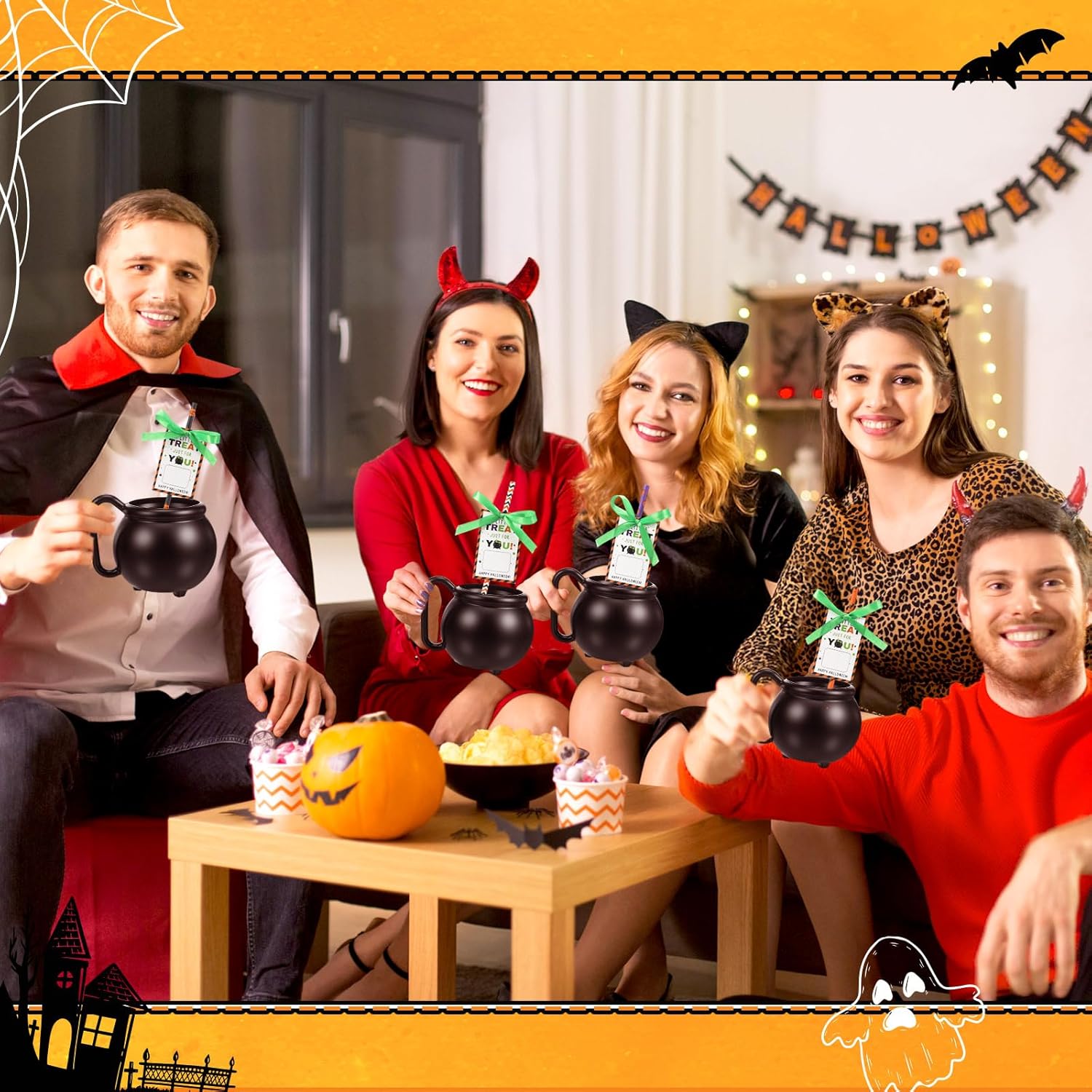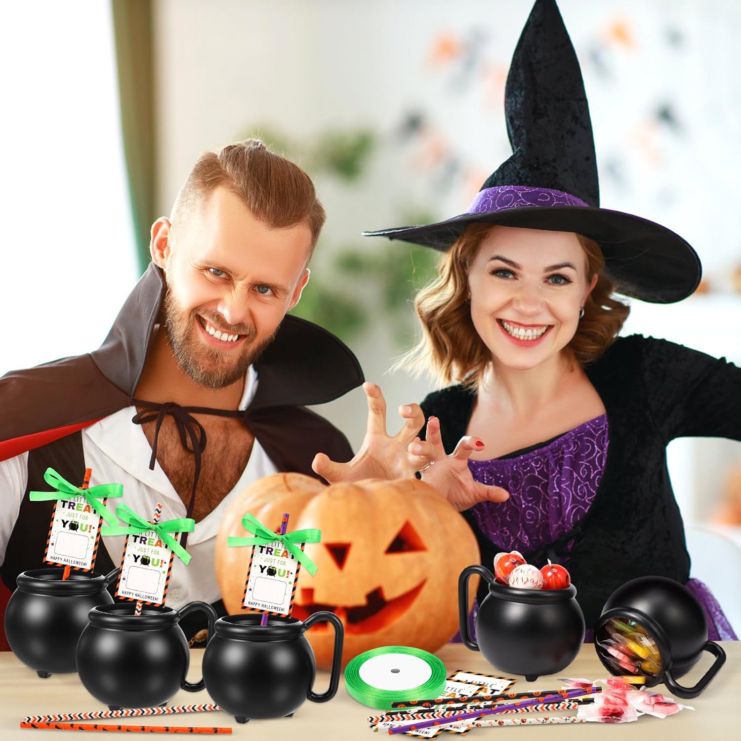 Features: Portable design: the halloween cauldron cups with large handle can facilitate you to pick up and put down, helping you enjoy tea and coffee comfortably, won't be unable to hold it. Triangular base increases stability and beauty, suitable for various occasions. Multiple usage: these halloween witch pots are practical, the classic is to put some fun, good-looking or delicious things as the central decorations during halloween, st patrick's day supplies, witch themed party. Also be applied as a daily use to put drinks, jewelry or make a small flowerpot for your mini plant. Specifications: Quantity: 12 sets Material: plastic Color: black Size: 12.6 x 11 x 9.5 cm/4.96 x 4.33 x 3.74 inches Package includes: 12 x halloween cauldron mugs 12 x halloween paper straws 12 x halloween tags 1 x roll of green ribbons Notes: Manual measurement, please allow slight errors on size. Due to the screen display, the color of the item may differ slightly from the picture