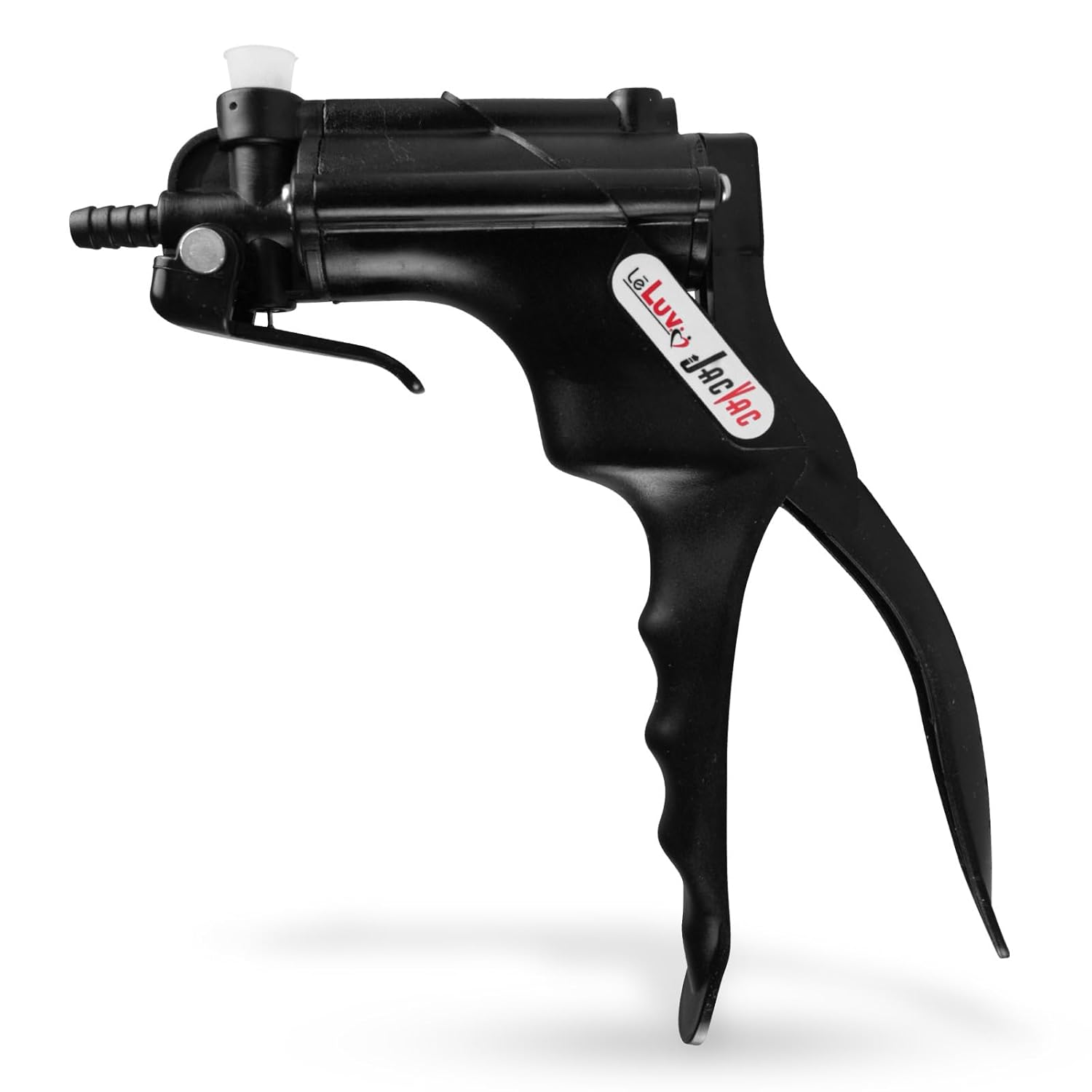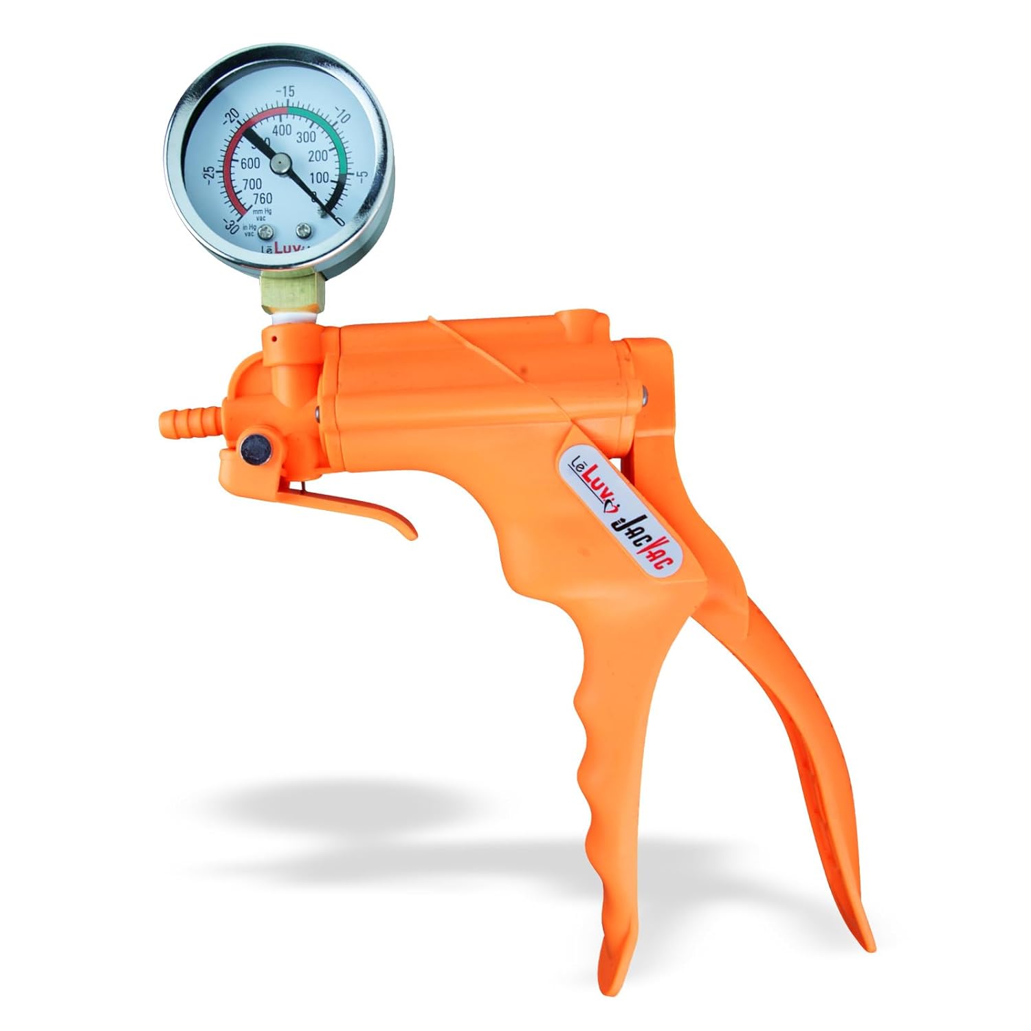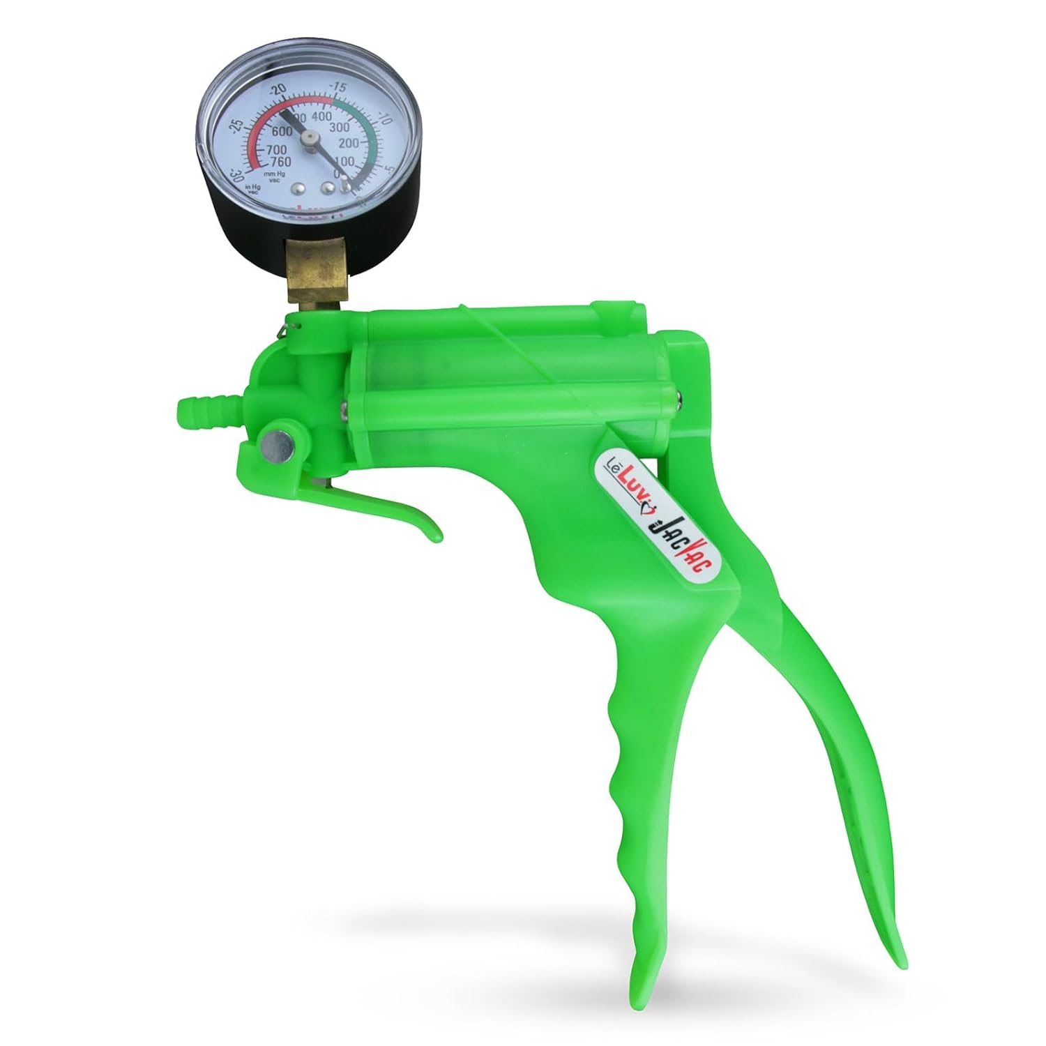 Get fast results with the LeLuv JacVac Pistol Grip one-handed operation vacuum pump handle. This colorful tool is durable, the vacuum release is easy to use with one finger for your safety. An ergonomically designed reinforced handle can be used easily with one hand and may aid healthy sexual wellness. The LeLuv JacVac pumps approximately 1 cubic inch per stroke; develops and holds up to 25" of vacuum (Mercury Hg.)We offer the LeLuv JacVac with no gauge, with a gauge, and with a protected gauge option. While you may purchase JacVac without the gauge, we recommend the JacVac version with a gauge for your safety and repeatable pumping session performance. An angled gauge will be installed that can be swivel 360 degrees, making it very convenient. Whether you are left-handed or right-handed, the gauge can turn to face you at all times at any angle- A unique feature on this pump handle! A rubber cover is added with the "Protected Gauge" option to prevent damage to the housing of the gauge, helping to absorb vibration from a fall and keeping your gauge working properly.